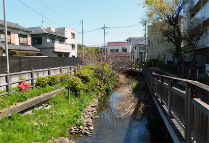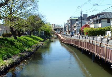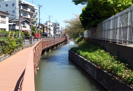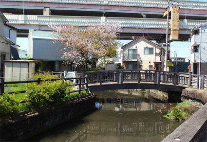 【再び古隅田川を歩く】 綾瀬川(本来は古隅田川)を水戸橋で渡り、再び、古隅田川を辿ることに。 |