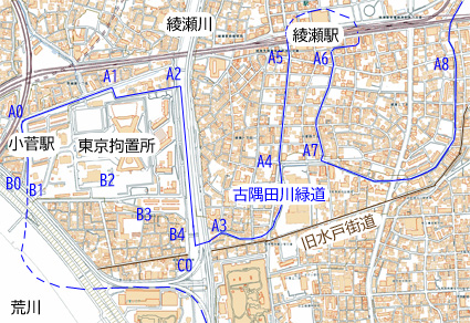 ![]() 【B0:古隅田川緑道・小菅万葉公園】 |