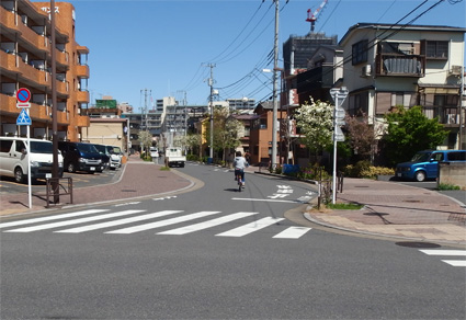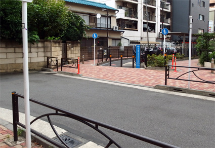 ![]() 【古隅田川緑道が綾瀬川通りを横切る】 手前から、[陸前橋][旧水戸街道][小菅交番] |