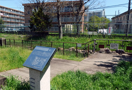 ![]() 【B2:江戸町会所の籾蔵】 小菅御殿は、1794年に廃止され、あと地には災害に備えて米を籾のまま貯える籾蔵が建てられた。 深川新大橋東詰に5棟、神田向柳に12棟、ここ小菅村に62棟、江戸筋違橋に4棟の倉庫を建て、毎年七分積金と幕府の補助金とで買い入れた籾が貯蔵されていた。小菅に建てられた理由は、江戸市街から離れ火災の心配がない事、綾瀬川の水運がある事が適地とされた。(現地案内板より) |